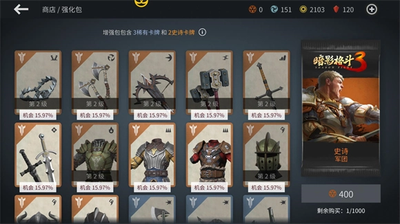 3、在游戏里,我们能够为自己的角色佩戴装备与武器,以此来提升角色的防御能力和伤害输出。玩家可通过主线任务、支线任务、商店的免费包以及决斗宝箱获取普通或稀有装备;通过每周活动能得到一套史诗或独特装备;而每周活动的首次通关奖励,则包含一个普通独特包和一个高级独特包。
