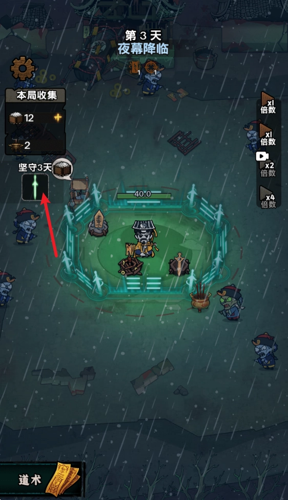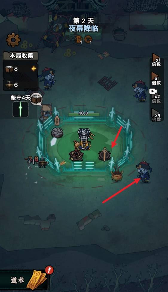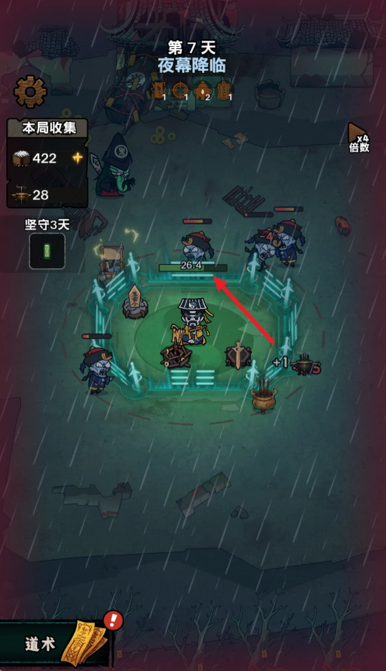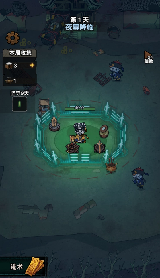 夜幕降临后,僵尸、妖怪这类敌人就会前来袭击我们,我们得借助布置好的道术来抵御它们的攻击。