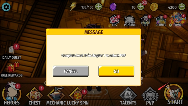 7、要是完成了10章节,随时可以开启pvp模式。