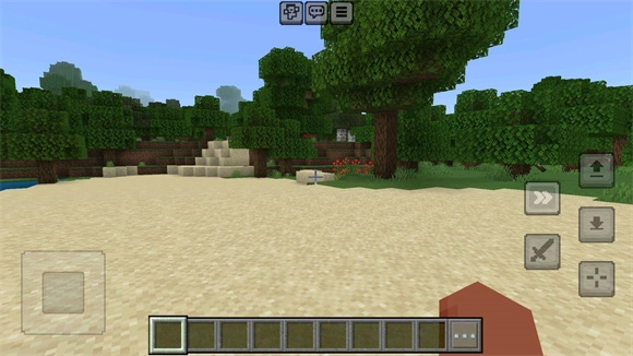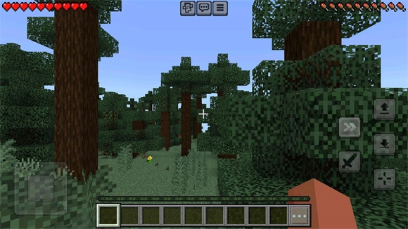 进入游戏世界后,左侧的控制区域用于操控角色移动,右侧的按钮则分别对应角色的攻击、采集、制造、奔跑、跳跃、蹲下和瞄准等操作。