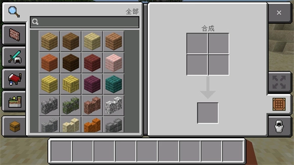 5、收集到足量材料后即可进行合成操作。点击方框最右侧的三个小点,便能打开合成界面。界面左侧可选择合成类型,如建筑、装备、物品等;选好材料后,将其拖动至右侧,就能合成对应的物品或装备。