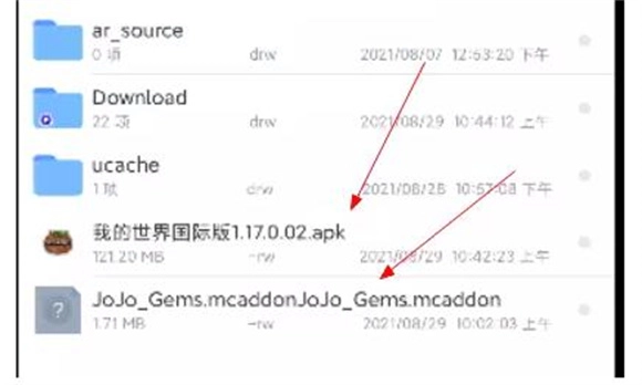 1、首先,所需的模组文件需要以.mcaddon、.mcpack或.mcworld为后缀。