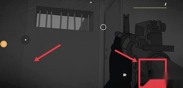 4、游戏内可通过左侧屏幕区域操控枪支的瞄准位置,右侧的枪械按钮用于发起攻击