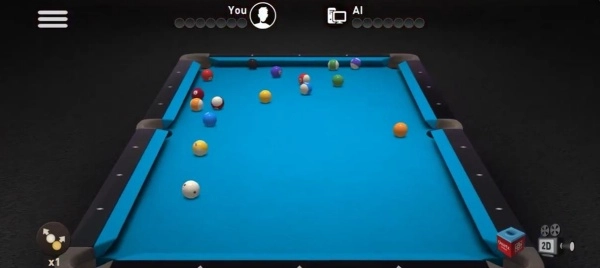 1、进入游戏后选择8球或9球模式,根据自己的水平挑战对应难度的AI对手。