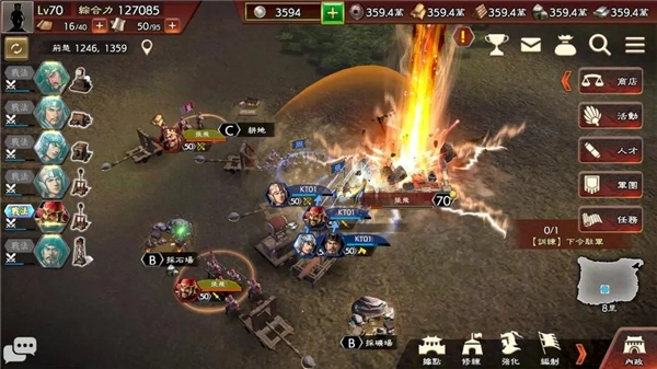 9. 武将快速升级:通过扫荡、讨伐和练兵等方式快速提升武将等级。扫荡是最直接的练级方式,而练兵则是后期练新武将等级的最佳方法。