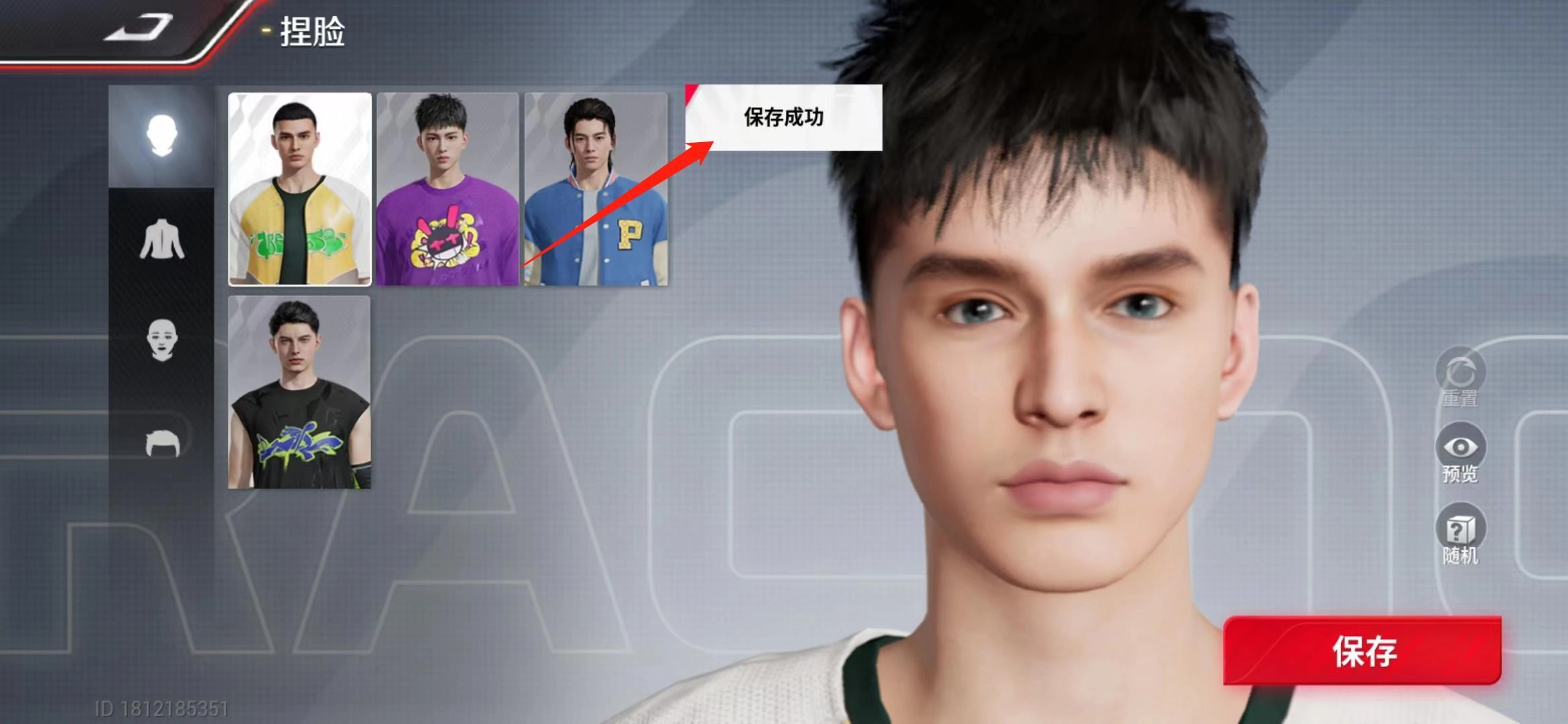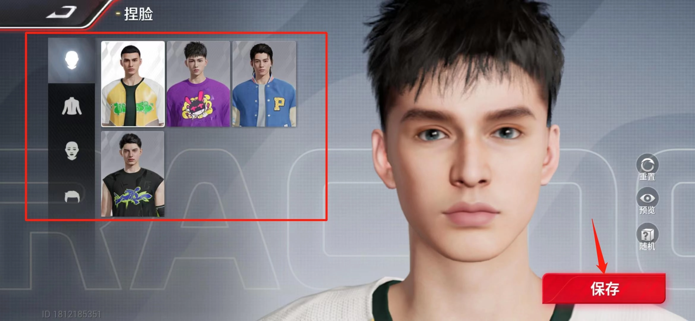 3、进入捏脸界面后,玩家可依据自身需求调整眼睛、发型等外观细节,调整完毕后需点击保存按钮确认修改。