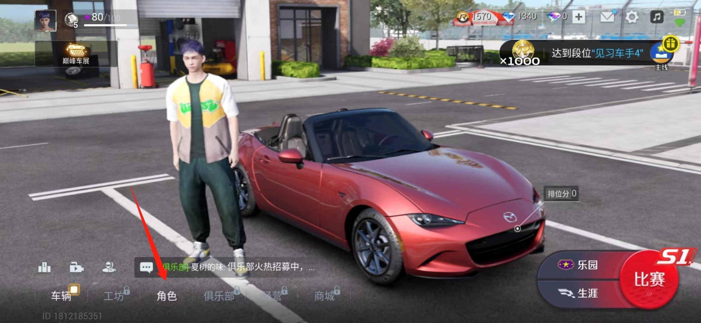 1、进入巅峰极速的界面点击【俱乐部】入口;