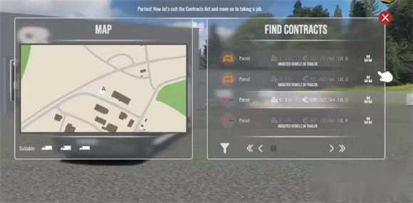 2、选好合约和工作后点击左侧的车辆可以切换不同的卡车。