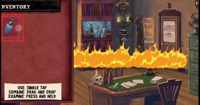 接下来点击那个能喷水的小壶,就能把燃烧的火轻松扑灭了哦!(之后用其他工具也都按这个步骤来就行)