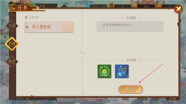 游戏开始,可以先在【墨影阁】招募卡牌。