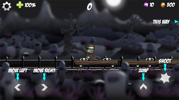 2、进入游戏后,有左右移动、跳跃、攻击这4个按键,你需要击败所有敌人。