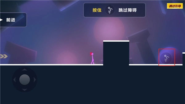 如下图所示:点击跳跃即可通过高墙