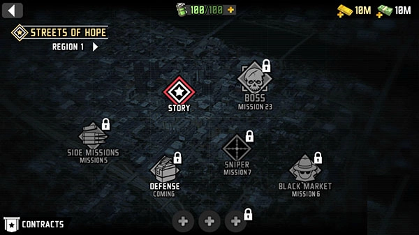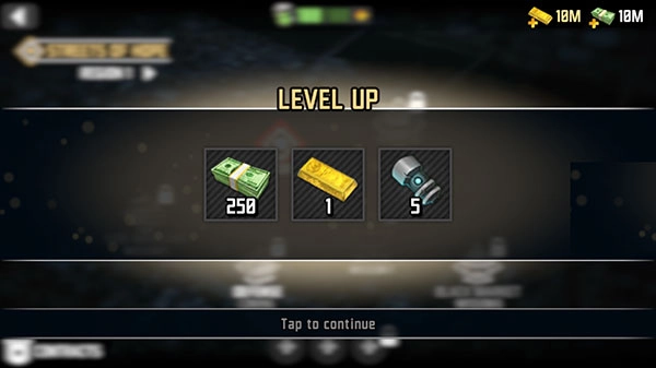 打开《最后的希望3》最新版本进入游戏后,右侧的红色按钮为任务提示,右上角则显示金币与钞票数量。