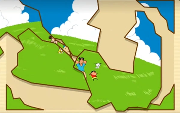 这样蜡笔小新就能着手拼图啦,点击拼图碎片把它移到恰当的位置就行。