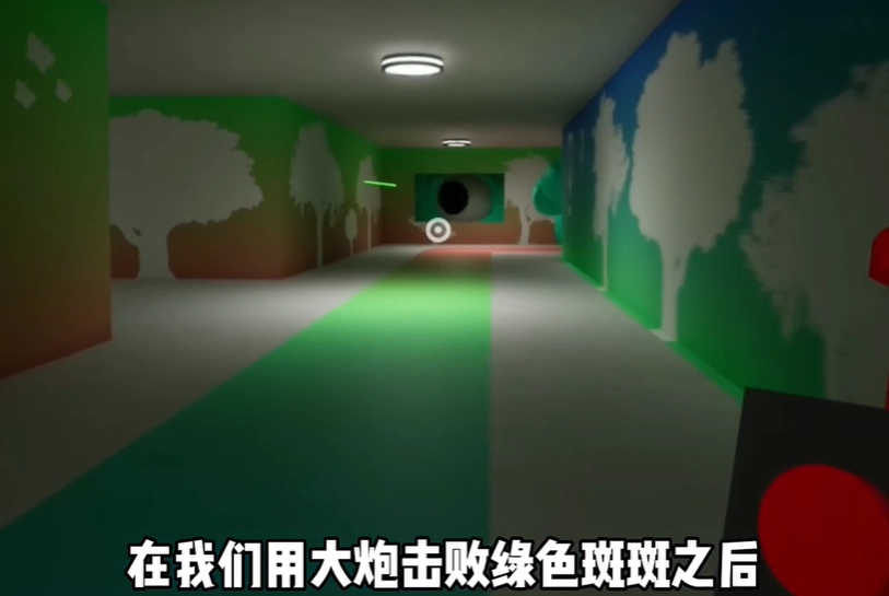 当我们用火炮制服那个绿色的班班角色后,它的眼睛会转动片刻,随即消失不见,这样我们就能顺利通过了。