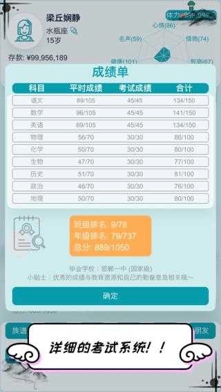 这是一款自由度与内容丰富度都相当出色的文字养成游戏,在游戏中,你的初始设定——包括身份背景、遗传特质以及与生俱来的能力都是随机生成的;你的家庭成员,如父母和手足,也都充满未知。每位玩家都能拥有独特的天赋属性,期待你体验不同人生轨迹带来的多样结局!例如,你或许天生具备运动潜能,通过不懈训练有望成为体坛传奇;也可能携带某种健康风险,在人生早期便面临挑战;或许出身平凡却心怀壮志,凭借奋斗积累起财富;又或许原本家境普通,却意外发现自己是失散多年的富裕家庭成员,人生就此逆转……游戏的可能性远超想象,开发者的设计总能带来惊喜,随时等待你开启专属的人生模拟之旅!