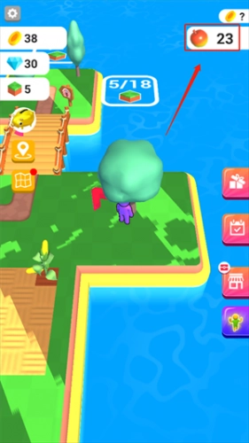 在右上角能看到已经收获的农作物,靠近自己土地上的农作物,就能收获各类蔬菜和水果。