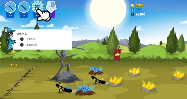移动到左上角区域,那里有个标着弓箭手作战图案的图标;轻轻点击它,就能召唤出弓箭手。之后只要朝着敌人的方向滑动屏幕,弓箭手便会自动发起射箭攻击。