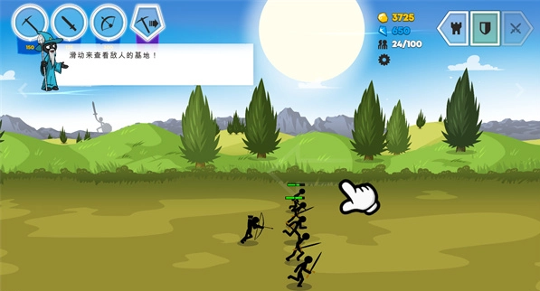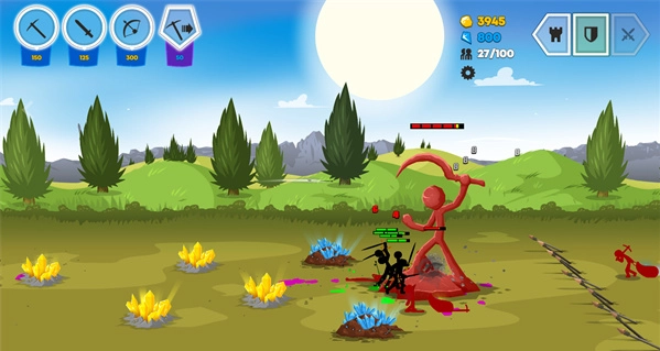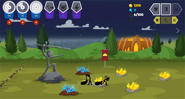 这款游戏有个很有意思的设计:玩家能亲自操控其中一名角色,秀出自己的走位技巧,主动吸引敌方火力,完全不用像个局外人似的干看着——要是操作得当,甚至能一举扭转战局,玩起来确实多了份参与感和紧张感。另外,不同兵种的火柴人动作细节也打磨得相当到位:矿工挖矿时的专注姿态、弓箭手拉弓射箭的连贯动作、剑士挥砍时的利落招式,整套动作衔接得流畅自然,像行云流水般丝滑,丝毫没有生硬拼凑的违和感。
