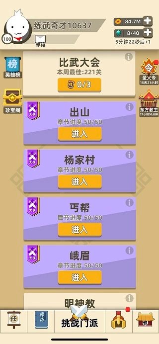 进入游戏后,首先得通关明神教,完成这一步后点击左侧的珍宝阁,就能看到组合技“追踪炸弹”了。