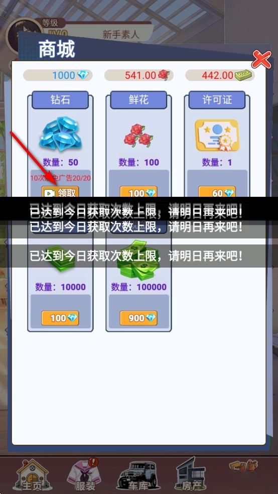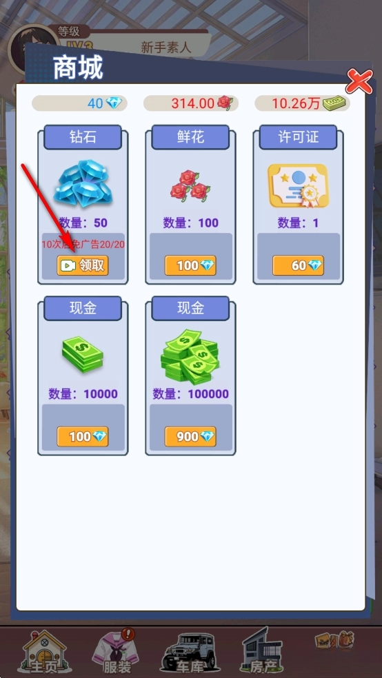 进入【商城】,获得大量钻石奖励