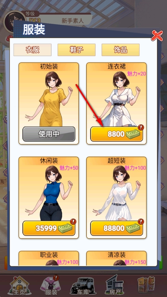 点击【服装】,去解锁各种衣服、鞋子、饰品