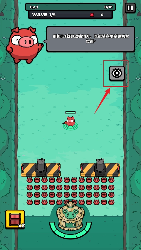 在右侧操作区域点击“侦查眼”图标,查看当前能够部署的防御机台种类,挑选出最适配当前战局的单位。