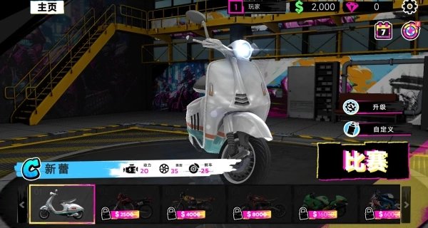 2.玩家将以新手车手的身份开启职业生涯,通过参与全球各地不同级别的赛事获取奖金,进而用这些奖金购买并升级更多顶级摩托车。