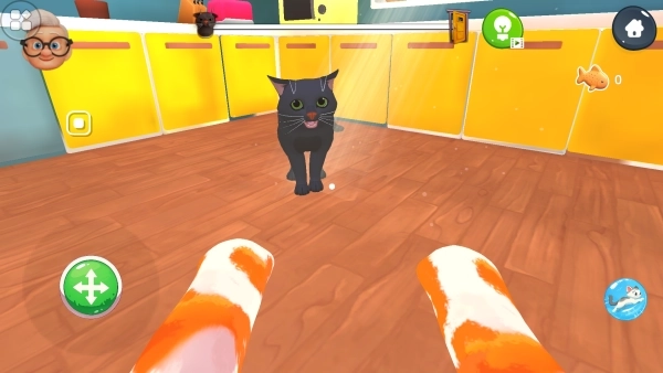 1、当在厨房区域发现黑猫时,操控角色(借助左下角的方向键)朝着黑猫的方向移动,待靠近黑猫后即可触发互动环节。