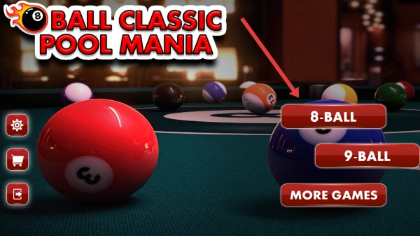 在Ball-Classic-Pool-Mania的主界面,你可以点击8-BALL按钮来选择8球模式,从而进入台球对战环节。
