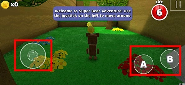 左下角的轮盘按钮负责操控超级熊的移动,右侧屏幕通过滑动能够调整视角。A键的功能是让超级熊跳跃,B键则用于对敌人发起攻击。
