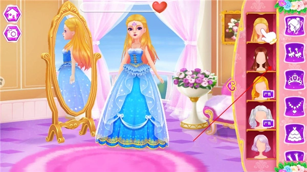 接下来要为公主设计一款时髦的发型,再挑选一套精美的裙子。