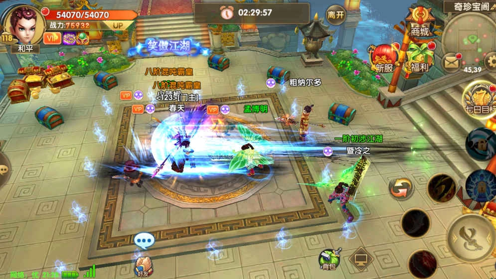 3、游戏内配备了跨服竞技系统,玩家能够和来自其他服务器的玩家展开较量,角逐至高荣誉,感受紧张刺激的竞技乐趣。