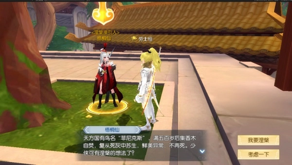 天方国有一种名为“菲尼克斯”的神鸟,它每历经五百年时光,便会衔来香木点燃,在熊熊烈焰中焚毁自身,随后又能从烬余的死灰里获得新生。当客官您的修为达到150级,并且经验值积累至完全饱和的状态时,就会收到来自“梧桐仙”的指引,踏上探寻涅槃重生这一深奥玄妙境界的旅程。