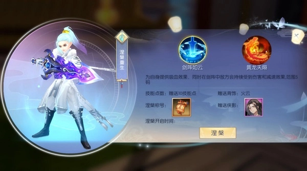 成功涅槃后,各职业将解锁两个全新的涅槃技能,获取带有属性加成的专属涅槃称号,得到紫色侠影“佟石头”,并额外获得10个技能点。此外,四大职业体系还能拥有一套专属的涅槃时装。