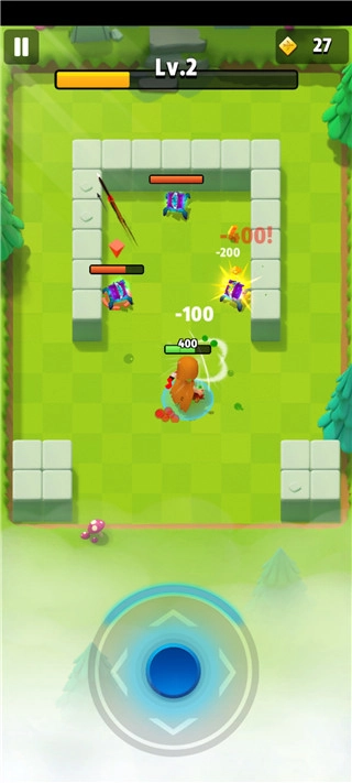 2、操作方面同样非常简单,玩家按住屏幕即可唤出虚拟摇杆,向指定方向滑动角色便会进行移动;遇到敌人后,只需松开手指,角色便会使用弓箭自动攻击;
