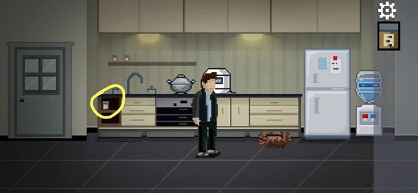 从门厅旁进入厨房门边的区域,或是经由客厅左侧门进入房间左侧门的那个房间,都能获取到文字(字母)提示“CHIP(薯片)”。进入房间后点击电脑,就能触发电脑旋钮来复原窗外的夜景,完成这一步后便会得到第二个密码“COKE(可乐)”——需要注意的是,此时妻子已经坐在了右侧位置。