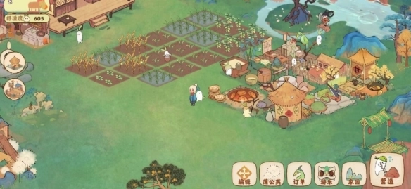 核心玩法围绕“耕作+加工+建造”展开:开垦土地种植作物,收获后送入厨房或作坊进行二次加工,最终制成菜肴或商品换取资源。