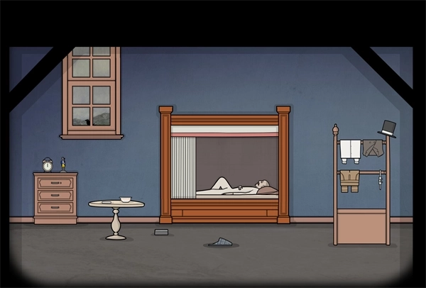 13.穿过正前方的大门。若想抚摸猫咪,此刻便可行动。接着去观察亚历山德拉·范德布姆的肖像画,点击画作时留意她会竖起两根手指。