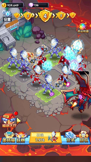 2、拖动奥特曼至脚下有颜色标识的区域可进行升级操作