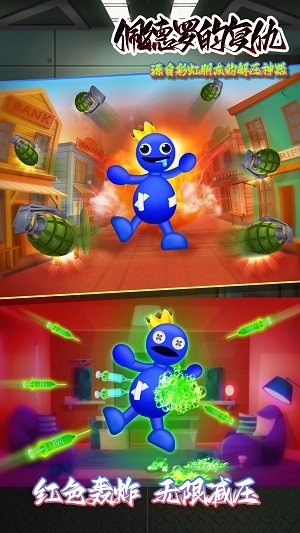 2、想在这款毁灭性的游戏,彩虹之友中粉碎你周围的一切吗?想要更多地踢打蓝色怪物?