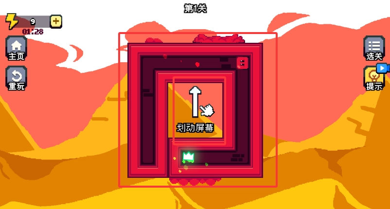 3、通过手指左右滑动来控制方块的移动方向,精准的操作能够帮助避开障碍,直达终点区域。