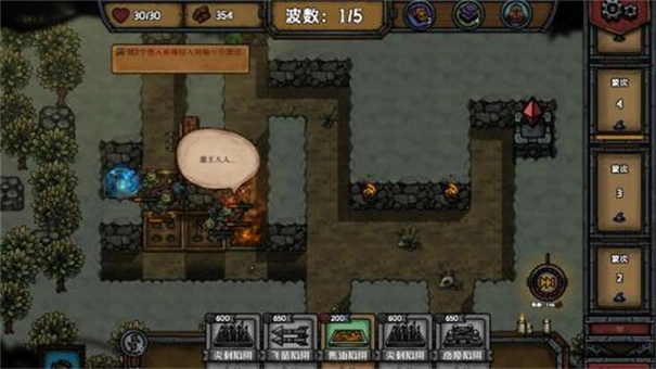 5、当然我们可以卖掉已有的陷阱,再重新建造新的陷阱来防御另一侧的敌人,但需要注意的是,如果开局提供的免费陷阱以及手牌中部分可免费放置的陷阱被出售,是不会获得资源的。