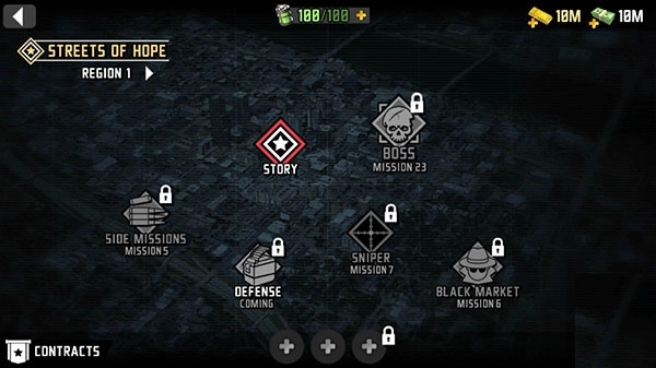 1、打开《最后的希望3》这款游戏,界面右侧的红色按钮用于显示任务提示,而右上角的区域则会展示金币和钞票的数量。