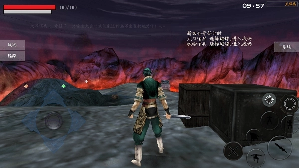 过关提示:一开始在一个安全的地方,手持长枪,还有双刺,后面的箱子打破有把2级的刀和包子,在对面同样的地方有2级的剑和飞镖,喜欢用什么随便你选。出来的时候有两个兵,不要和他们纠缠,到道路中间的左边一个箱子里找到锤子,然后跑到栅栏前面不动只管防御,这样他们都来了,就会打到栅栏,等气满了,跳出来放绝招,如此反复两次,他们绝对全死,接着在打破栅栏就过关了。还有一种更简单方法就是开始的时候只管往栅栏那边跑,不管其他人,然后跳进栅栏,这样的话,除了火铳兵外谁都打不到,打烂栅栏就可以过关。