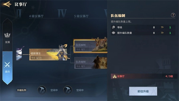 第一天要尽快提升主城等级,解锁队伍编制相关科技,这样就能开启第二队、第三队!如此一来就可以同时操作多支队伍了。