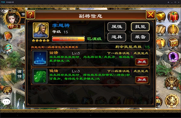 适用场景:国战模式、技能伤害类武将。不适用情况:统帅型武将。加点建议:全部点满或者加3点。