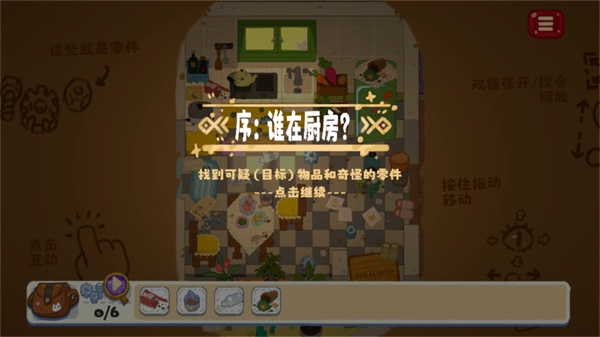 场景互动:多点击可疑区域(如发光物体、可移动物品)。