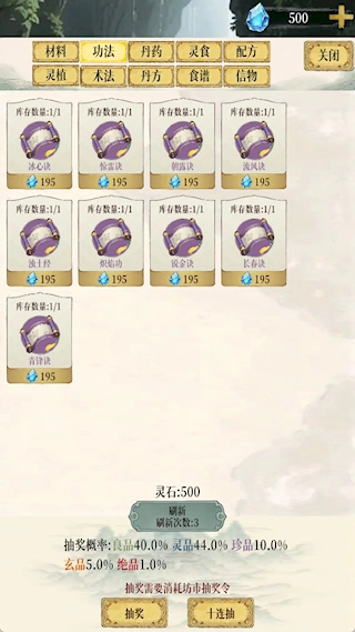 在储物中找到购买的功法,点击使用