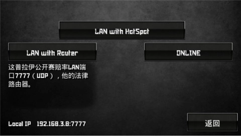 另一种是lan wirhhorspor(局域网),操作上会有些不一样,首先得开启WiFi热点,让其他玩家加入进来,接着输入房间IP就可以了;